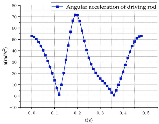 The angular acceleration equation of the drive rod can be obtained by calculating the first derivative of Formula (3) to time.