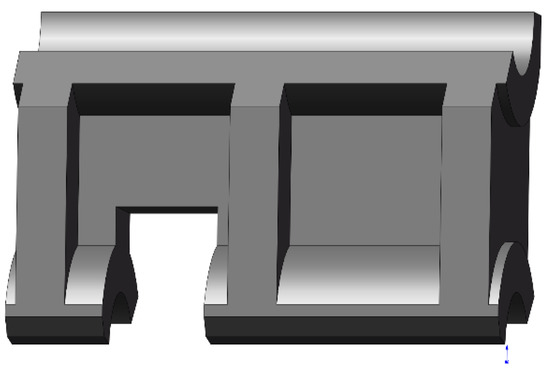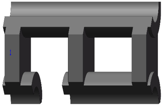 For the two traditional drive rod described above, this study proposes a new lightweight drive rod based on a fully symmetric structure (Figure 12). The structural shape of the drive rod was designed using the “I” pattern, and then, the stability of the drive rod structure was strengthened by symmetrically distributing three reinforcing ribs on the left and right sides. The lightweight drive rod has stronger compression and bending moment resistance, and is lighter in weight. The drive rod better solves the defects of large deformation and heavy weight existing in the above two types of drive rods.
