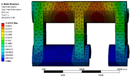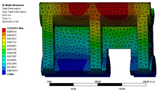According to the above optimization results, the weight of the drive rod is smaller and the elastic deformation is smaller than before optimization. The finite element analysis of the optimized drive rod has been conducted above, verifying that the optimization results are accurate. As the drive rod is part of the die-cutting device, it is necessary to consider its deformation during assembly. Therefore, in order to obtain more accurate verification data, the drive rod is assembled in a die-cutting device for overall analysis to verify the specific deformation data of the lightweight drive rod in the assembly.