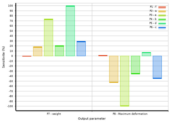 The parameterized drive rod model is imported into ANSYS software, with variable parameters as input parameters, weight and elastic deformation as output targets. Sensitivity analysis is performed on the variable parameters of the model using a sensitivity analysis module. The analysis results are shown in Figure 16.
