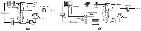 - Ge, F.; Wang, C. Exergy analysis of dehumidification systems: A comparison between the condensing dehumidification and the desiccant wheel dehumidification. Energy Convers. Manag. 2020, 224, 113343. [Google Scholar] [CrossRef]