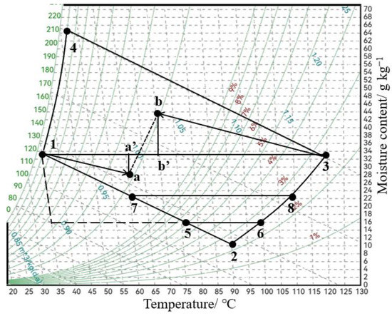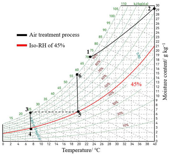 The dehumidification capacity () reflecting the ability of the dehumidification plant can be calculated by Equation (23).