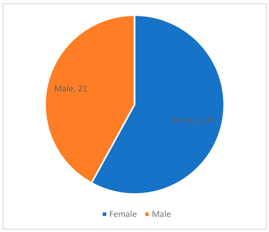 In the study, 29 female and 21 male patients (Figure 1) were initially included and restored with 100 Class I and II restorations (Figure 1).