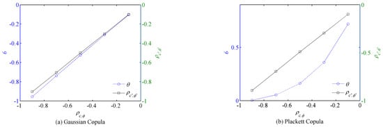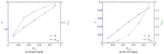 Some scholars have studied such cross-correlation and claimed that the heterogeneity and cross-correlation of soil profiles severely affect the stability of geotechnical structures. Fenton and Griffiths [] decomposed correlation matrices of parameters using the Cholesky decomposition method, and then simulated the CCRF using lower triangular matrices. Cho [] assumes that all random fields simulated in the same space have the same ACF. Then, the cross-correlation coefficient was used to characterize the cross-correlation between random fields of c and ϕ. The influence of cross-correlation on slope reliability was properly accounted for. However, according to copula theory, the correlation coefficient cannot accurately capture the correlation structure among parameters. To solve this problem, copula theory can be introduced to quantify the cross-correlation of soil parameters. Copulas are able to measure complex interdependencies among soil parameters. This might be expanded to make up for the deficiency of the traditional cross-correlation coefficient in simulating CCRF. To this end, copulas are intended to link individual random fields, as illustrated in the next section.