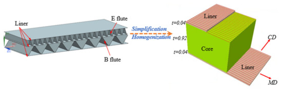 Simplified and homogenized EB/F corrugated fiberboard composite model.