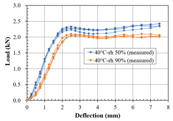 The results of the BCT were expressed as a load–deflection curve, as shown in Figure 7.