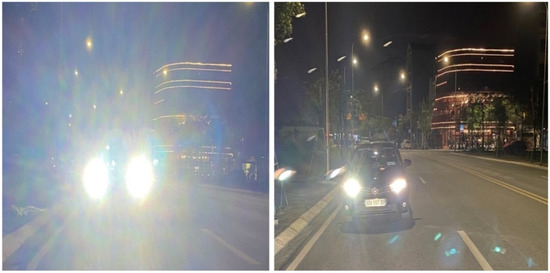 - Hu, J.; Guo, Y.; Wang, R.; Ma, S.; Yu, A. Study on the Influence of Opposing Glare from Vehicle High-Beam Headlights Based on Drivers’ Visual Requirements. Int. J. Environ. Res. Public Health 2022, 19, 2766. [Google Scholar] [CrossRef]