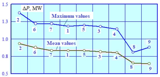| Transmission Line Design | Umin, kV | Max(k2U), % | Max (ΔPTN), kW | Max (ΔPTL), MW |