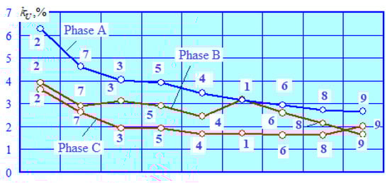 - Zakaryukin, V.P.; Kryukov, A. Complex Unbalanced Load Flows of Electrical Systems; Publishing House of Irkutsk State University: Irkutsk, Russia, 2005; 273p. (In Russian) [Google Scholar]