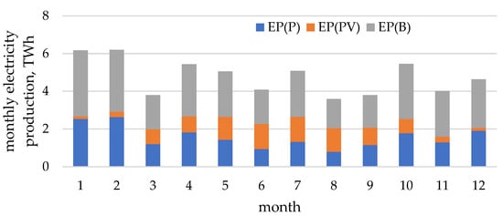 Based on the formulae shown in Section 2.4, the capacity factor was 25.5% in 2021 (CF, the value of energy production, was 15.2 TWh, with an average installed capacity of 6.8 GW); for 2022, details on a monthly scale are presented in Figure 12.