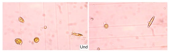 In the different PBR conditions, the microalgal growth was evaluated and calculated, as before [,], in terms of: (i) maximum MCC (MCCmax), expressed in the number of cells per millilitre; (ii) specific growth rate (μmax), determined by numerical regression of the experimental data at the exponential phase (between 3rd and 9th day) and expressed in d−1; and (iii) average biomass productivities (PX,avg), expressed in cells per volume per day. Autochthonous microalgal classes of C− PBR were identified by microscopic observation with an amplification of 40× (LEICA MC 120), according to their morphology.