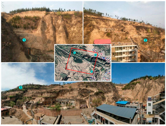 It is a typical erosional landform of the Loess Plateau. The ground surface is intensely cut, with rolling loess ridges and densely distributed narrow gullies, most of which present a “V” shape. The gullies are alternatively distributed with loess ridges, hills, and walls. Moreover, micro-geomorphologic landscapes such as cliffs, residual loess columns, and sinkholes are commonly observed (Figure 2).