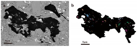 Original (a) and colorized (b) images of organic pores in sample SK1-S-1 using PCAS software processing.