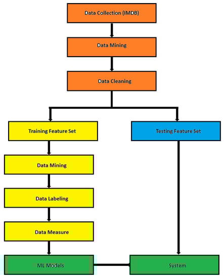 As depicted in Figure 1, the suggested model in this work will undergo the following processes to increase its ability to forecast a film’s success.