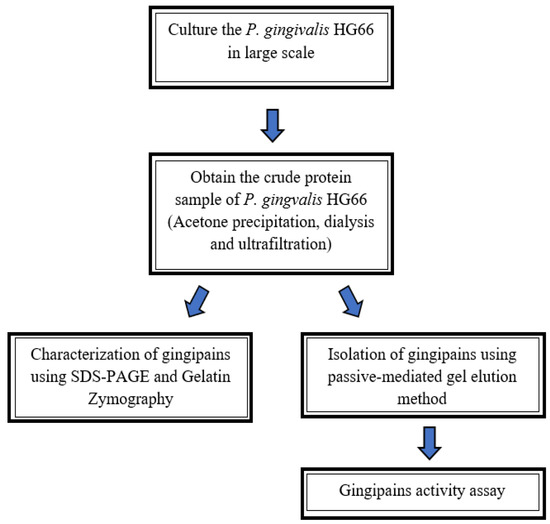 The flowchart given in Figure 1, demonstrates the simplified procedure for isolation and characterization of gingipains developed in the present study. The gingipains were first isolated using the passive diffusion-mediated gel elution method and further characterized using gelatin zymography.