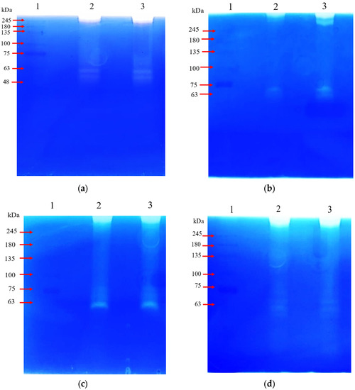 The crude protein sample was prepared as mentioned above in Section 2.2. The sample was mixed with 5× Native Gel sample loading buffer (300 mM Tris-HCl, 30% glycerol, 0.02% bromophenol, pH 6.8) [25]. The sample was mixed well and thoroughly with gentle pipetting and incubated at 20 °C for 10 min.