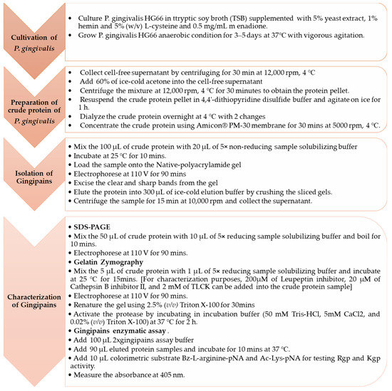 An overview of the studies performed to isolate and characterize the gingipains is shown in the flowchart above.