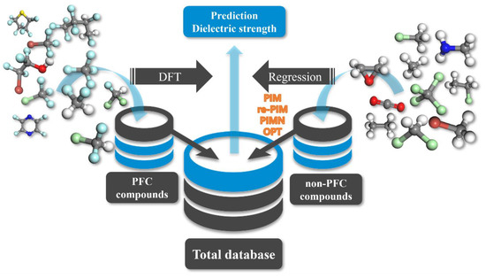- Jang, J.; Jung, K.H.; Kim, K.C. Development of computational design for reliable prediction of dielectric strengths of perfluorocarbon compounds. Sci. Rep. 2022, 12, 7027. [Google Scholar] [CrossRef] [PubMed]