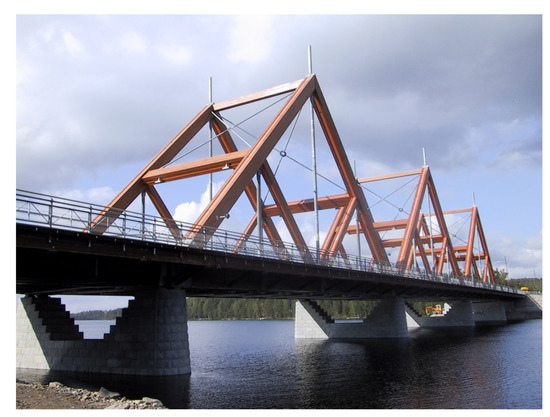 - Jutila, A.; Salokangas, L. Research on and Development of Wooden Bridges in Finland. Struct. Eng. Int. 2000, 10, 182–185. [Google Scholar] [CrossRef]