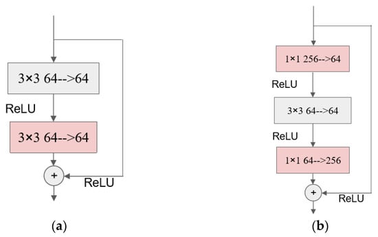 Comparison of ResNet module before and after improvement (a) The module before improvement; (b) The module before improvement.