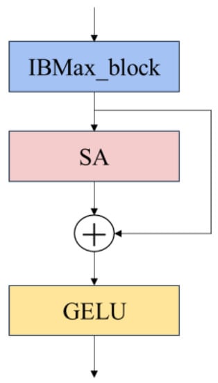 For the IBSA_block composed of IB_block and IB_Maxpool_block, there is no difference in the overall structure; both of them are input after IBMax_block, and then the disease area features are extracted by the SA attention mechanism module, and the output is summed with the branch shortcut to form the residual module. The final output goes through the activation function. The activation function between the IBSA_block block and the block is the GELU activation function.
