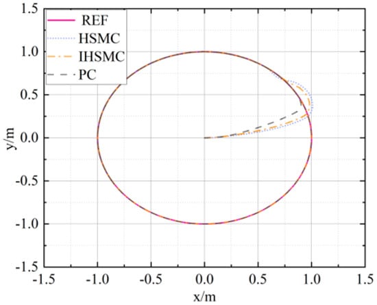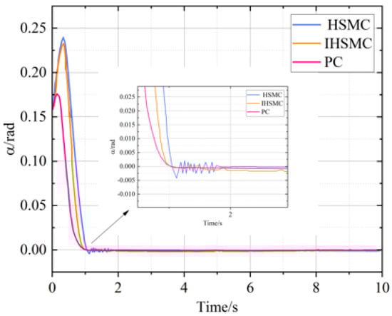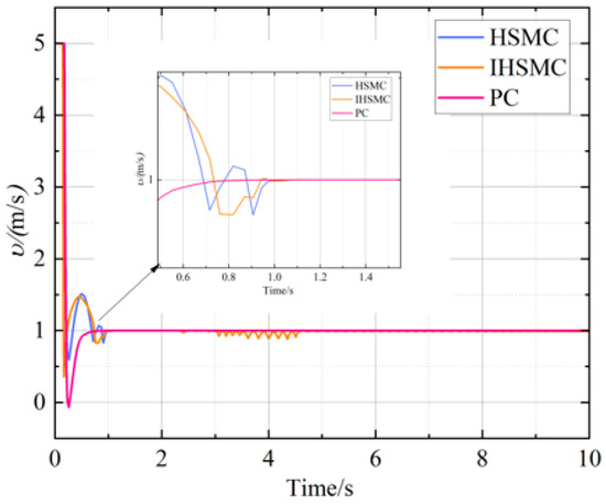 To demonstrate the superiority of the proposed method in this paper, three comparative experiments were conducted under the given disturbance conditions: the first experiment involved the simulation results of the unimproved HSMC method, the second experiment involved the simulation results of the improved IHSMC method with adaptive law but without nonlinear disturbance observer, and the third experiment involved the simulation results of the proposed method in this paper (referred to as PC).