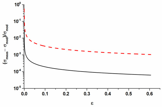 The accuracy of the FEM simulation is affected by the model parameters of Equation (2) as well as by the elastic and plastic components of the Ramberg–Osgood approximation. Figure 7 shows the relative error caused by the neglection of the elastic part in Equation (1). Although the elastic region represents a relatively small part of the stress–strain diagram, it still has a noticeable influence on the accuracy of the simulation, which is shown in Figure 7.