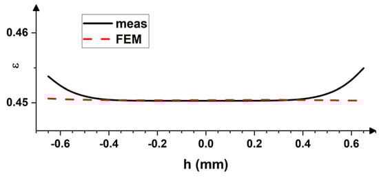 In the present investigation, the ratio of ωt/ωb = 1.474 and hi/hf = 1.476, and therefore the homogeneous strain distribution can be ensured, as shown in Figure 13. Comparable values are predicted by the model of Pustovoytov et al. [46] (ωt/ωb = 1.52 and hi/hf = 1.52). The discrepancy observed does not affect the result significantly in the examined case.