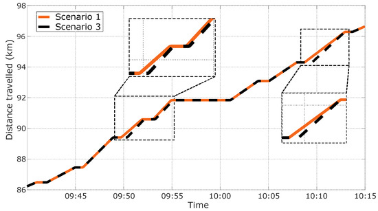 Comparison between the distance travelled by bus n°2 in scenario 1 and scenario 3.