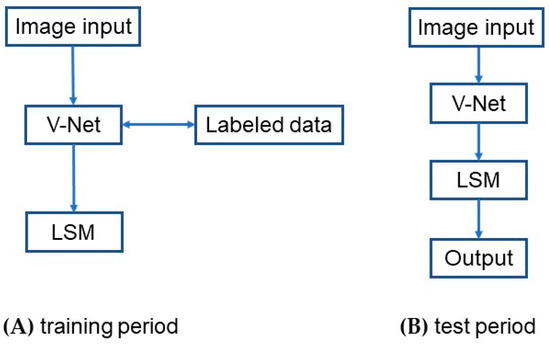 The structure of the VLSM-Net model: (A) training period; (B) test period.