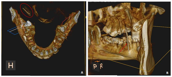 - Kim, J.-H.; Moon, S.-Y. Removal of a Broken Needle Using Three-Dimensional Computed Tomography: A Case Report. J. Korean Assoc. Oral Maxillofac. Surg. 2013, 39, 251. [Google Scholar] [CrossRef]