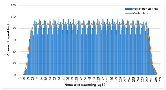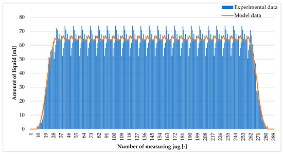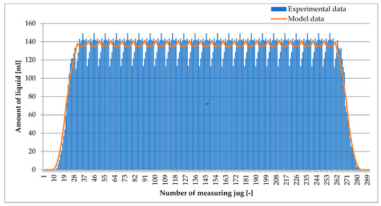 The obtained results, generated by the model, were normalized by multiplying each of them by such a constant that the sum of the amount of liquid from the model data was the same as the experimental data.