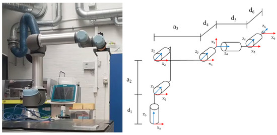 UR5E robot and its linkage coordinate system.