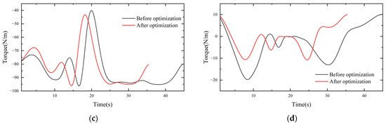 Comparison of joint torque curves: (a) joint two; (b) joint three; (c) joint four; (d) joint five.