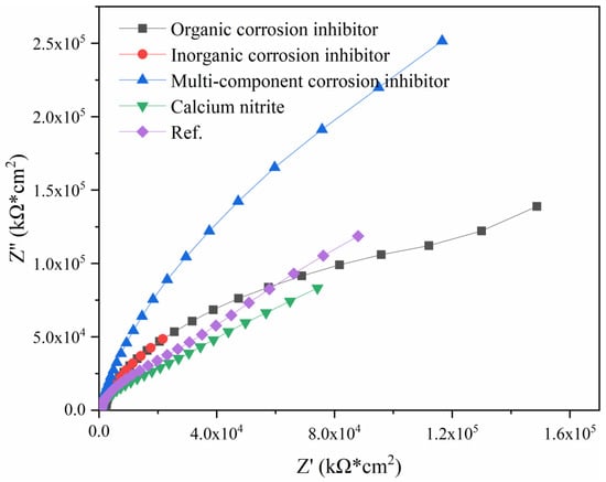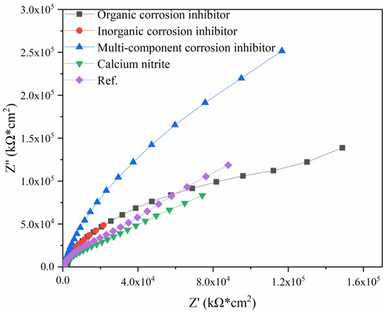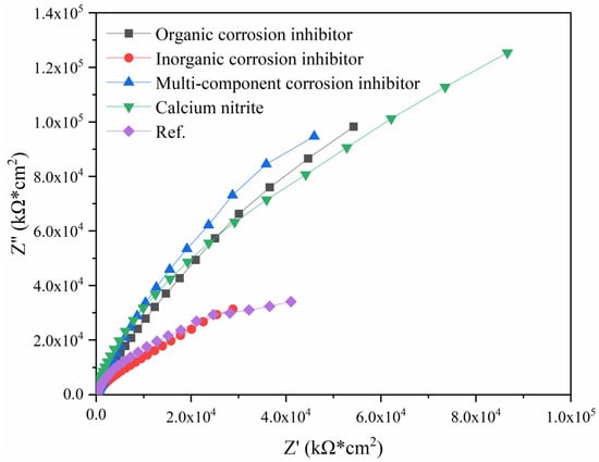 - Wang, H.; Zhang, A.; Zhang, L.; Liu, J.; Han, Y.; Shu, H.; Wang, J. Study on the influence of compound rust inhibitor on corrosion of steel bars in chloride concrete by electrical parameters. Constr. Build. Mater. 2020, 262, 120763. [Google Scholar] [CrossRef]