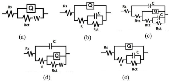 3.3. Equivalent Electrochemical Circuits Analysis
