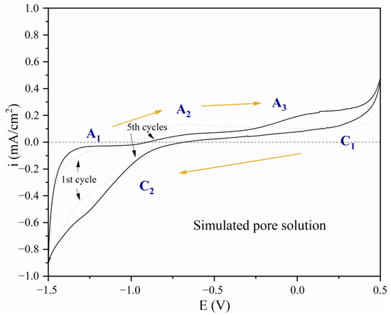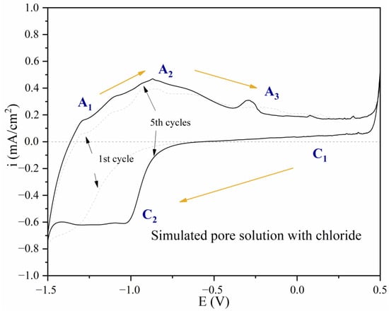- Cabrini, M.; Lorenzi, S.; Pastore, T. Cyclic voltammetry evaluation of inhibitors for localised corrosion in alkaline solutions. Electrochim. Acta 2014, 124, 156–164. [Google Scholar] [CrossRef]