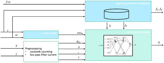 In hybrid approaches, physical or heuristic models are combined with data driven models. The later update the relevant parameters to simulate aging effects. Using equivalent circuit models (ECMs) together with extended Kalman filters was investigated extensively [11,12]. Current research is focusing on finding most robust estimation approaches [13,14].
