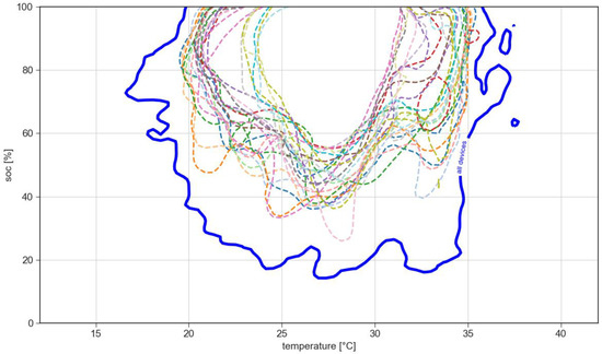 Transfer learning means the extrapolation of information between different devices. It facilitates training with more data. Figure 8 illustrates this. Hypothetically, this improves the model performance, especially for operation ranges that are seldom used. By using all subfleet data, the SOC-vs-temperature region of available data is enlarged, which enhances the extrapolation power of the model.