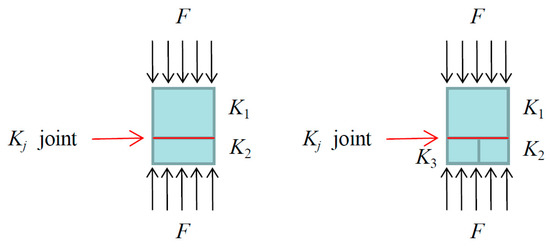 Substituting Equation (12) into Equation (6), the equivalent stiffness of the two stones below can be obtained as follows: