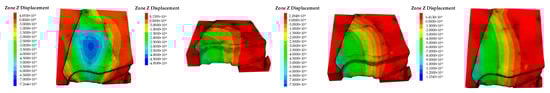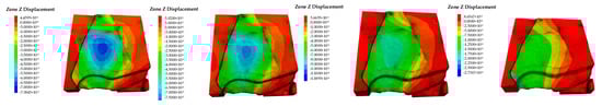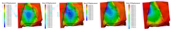 Vertical displacement clouds of the top slab of the damage factor of different broken slates.