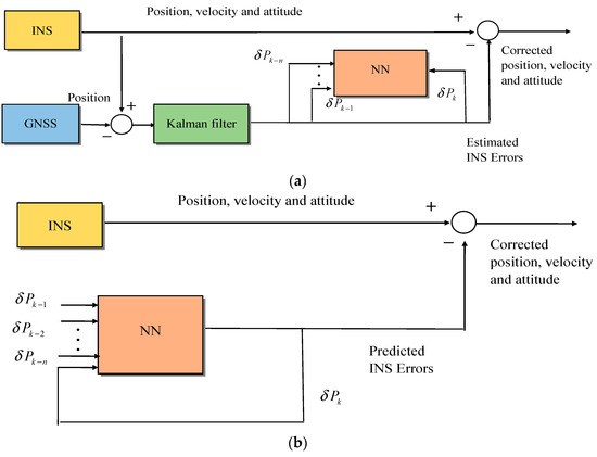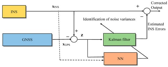 - Guo, H. Neural Network Aided Kalman Filtering for Integrated GPS/INS Navigation System. Telkomnika 2013, 11, 1221–1226. [Google Scholar] [CrossRef]