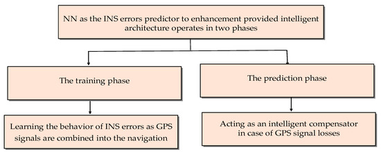 The INS system can deliver precise navigational data quickly, and its accuracy will rapidly deteriorate over time. Therefore, it has been suggested that GNSS and INS be integrated to address their limitations. However, during GNSS process failures, the system will switch to a completely INS system navigation mode, and the effectiveness will be massively degraded. The features of the GNSS/INS integrated navigation system components in the situation of GNSS failures have been improved by using a variety of methods that have been presented to identify the GNSS signal outages. The addition of additional sensors to supply fresh reference data from other sources for the integrated navigation system, for which the odometer and maps are one remedy during GNSS failure. However, the price and size of the navigation system will rise correspondingly. Cornering, GNSS denial situations, the integration of employing KF, and several methods are also utilized to increase the perfection of GPS locations and to get over signal blockage in metropolitan areas. Neural networks are a popular choice for representing dynamic and complex processes since they have the potential to learn. To remove their influence from the estimation process, errors and noise are typically estimated using neural networks. In the event of a GPS signal failure, these strategies significantly improve GPS/INS integration. However, the localization systems are significantly impacted by severe multipath settings or prolonged non-line-of-sight (NLOS), and no improvement from its prior methodologies is realized. Although a few interesting implementations in complex visual detection and reduced AI computation have resulted from this research, a relatively intelligent mechanism has yet to be produced [14,15,16,17].