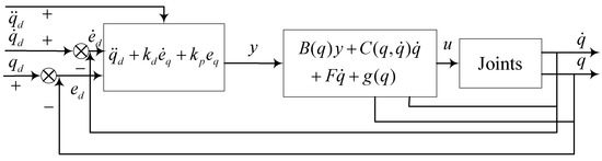 where represents the desired joint matrix, represents the tracking error, and are positive definite matrices to ensure stability. The specific control block diagram is shown in Figure 2.