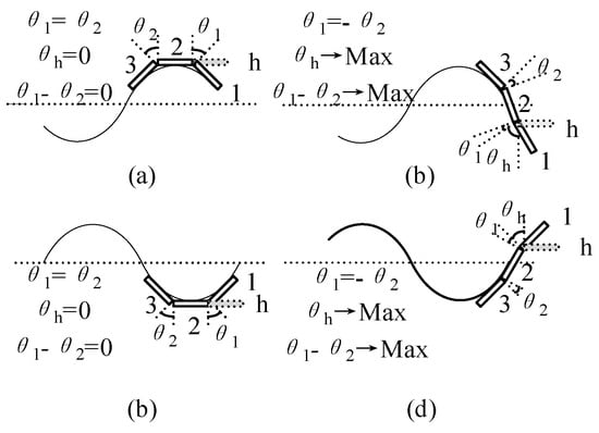 In Figure 3, 1, 2 and 3 represent the first three links of the robot, represents the original joint angle of the first joint, represents the joint angle of the second joint and represents the joint angle of the head joint. It can be seen from the figure that and have the same phase and frequency but different amplitudes. Set the original joint angle of the first joint as , and the phase difference of adjacent joints as , the ideal angle equation can be expressed as (3).