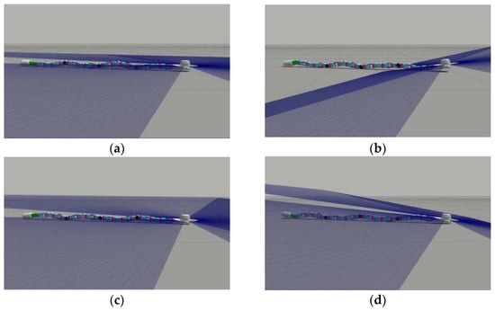 Head stabilization experiment with stabilization algorithm. (a) Phase is 0; (b) phase is π/2; (c) phase is π; (d) phase is 3 π/2.
