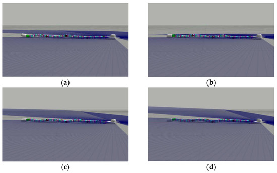 On the basis of the inchworm locomotion gait, the joint angle of the neck joint of the snake robot is compensated by Formula (8). The simulation process is shown in Figure 9 and Figure 10. Figure 9 represents the simulation without the stable algorithm, while Figure 10 represents the simulation with the stable algorithm. The simulation results are shown in Figure 11.