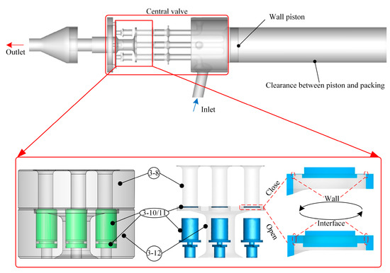 In addition, a small 0.05 mm gap is reserved to accommodate the generation of a new mesh during the valve sleeves’ opening phase. Simultaneously, the boundary between the gap and the flow domain of the middle piece (3–8) is either set as an interface to permit gas flow during the exhaust process, or as a wall to prevent gas leaks through the gap. The interface phase and wall events are calculated using LPM with RGM.