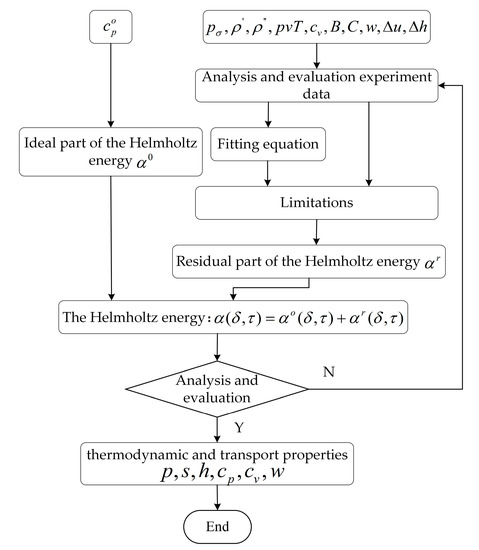 The process of calculating thermodynamic and transport properties using the Helmholtz energy is depicted in Figure 4.