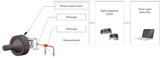 The reciprocating inertial force and friction force can be obtained with known variables (Equations (5) and (6)). The piston rod load has only one independent unknown variable: stress on the piston, which can be obtained from the measured strain (Equation (7)).